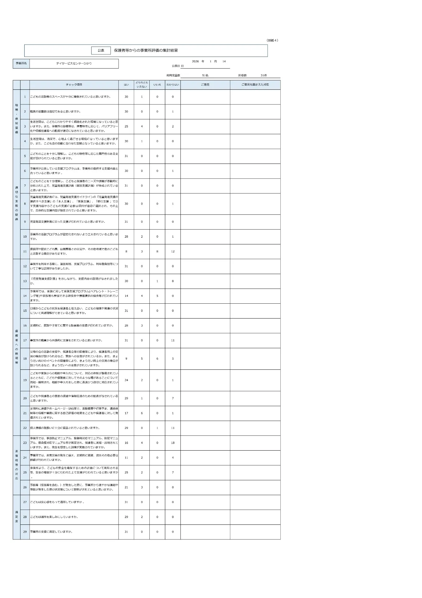 デイサービスセンターひかりの児童発達支援の評価結果についてお知らせいたします。